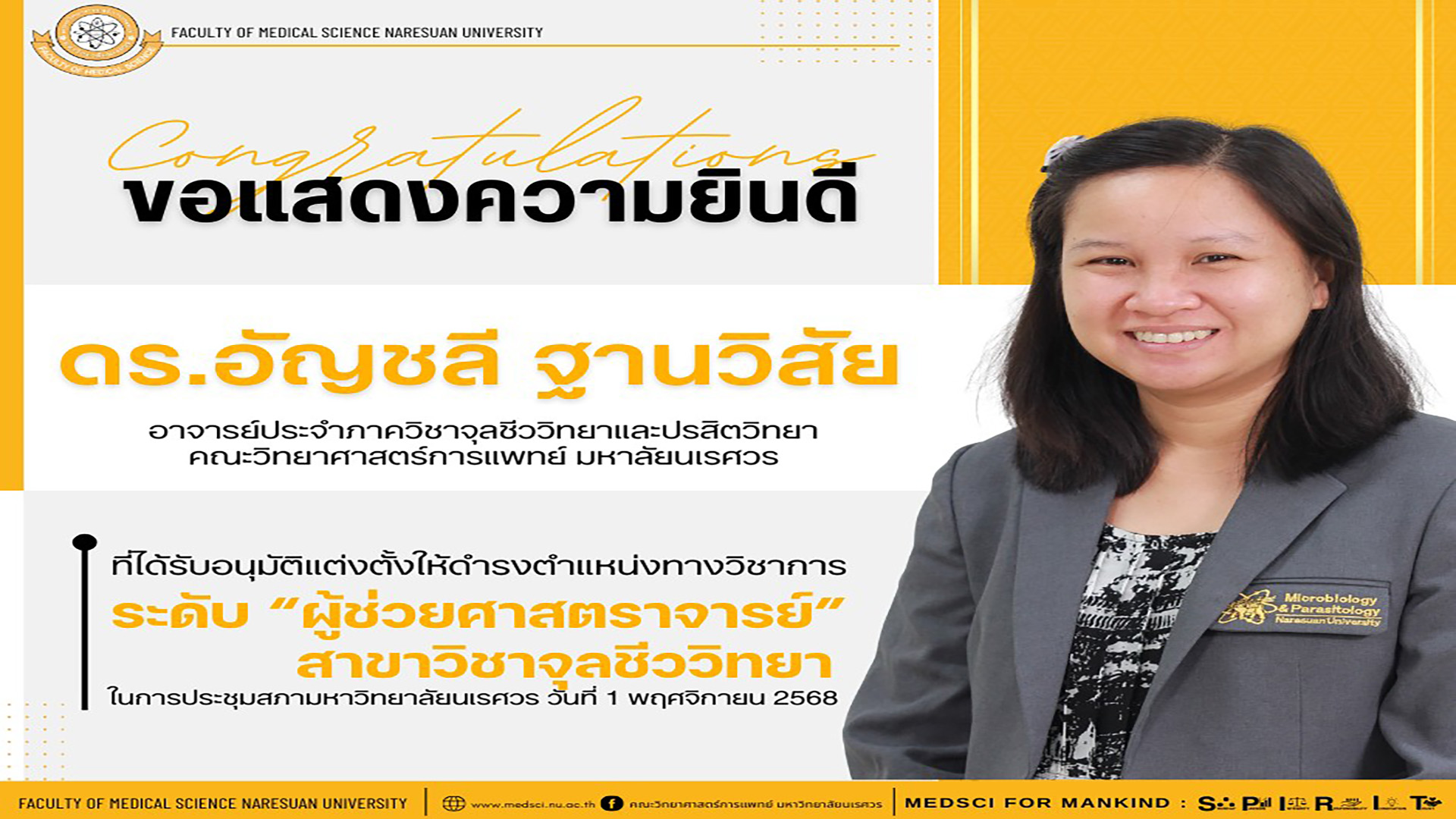 คณะวิทยาศาสตร์การแพทย์ มหาวิทยาลัยนเรศวร ขอแสดงความยินดีกับ หัวหน้าโครงการวิจัยที่ได้รับการสนับสนุนท...